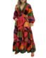 New Long Sleeve Deep V Colorful Print Dress