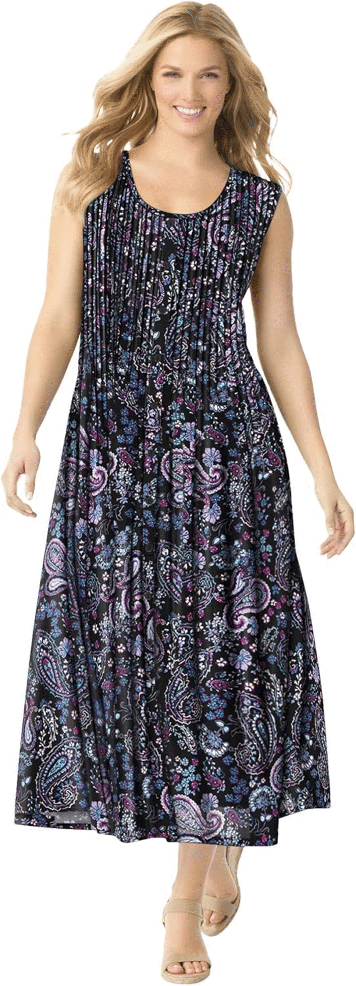 Chic Plus Size Pintucked Sleeveless Dress for Effortless Elegance