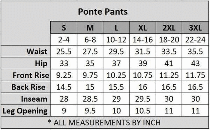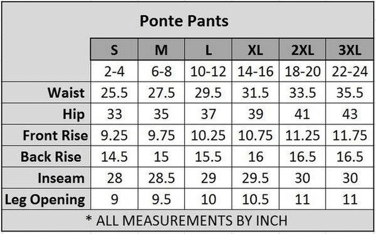 3XL: (Waist), (Hips), (Inseam), (Length)